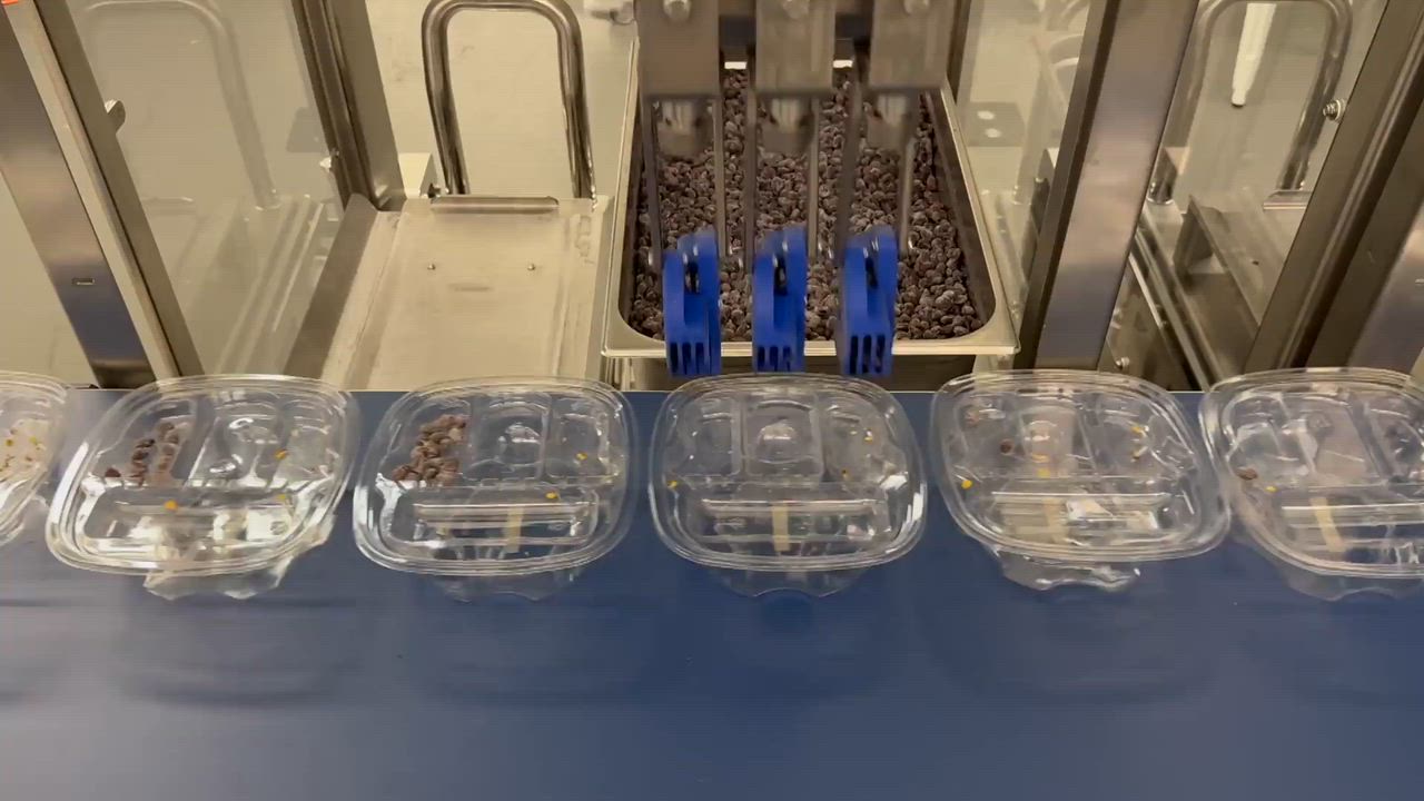 AI-enabled robotic meal assembly automates high-mix food production lines by picking, portioning, and placing ingredients into trays, bowls, and other meal formats. Built to adapt to variable SKUs, tray positions, conveyor speeds, and ingre...